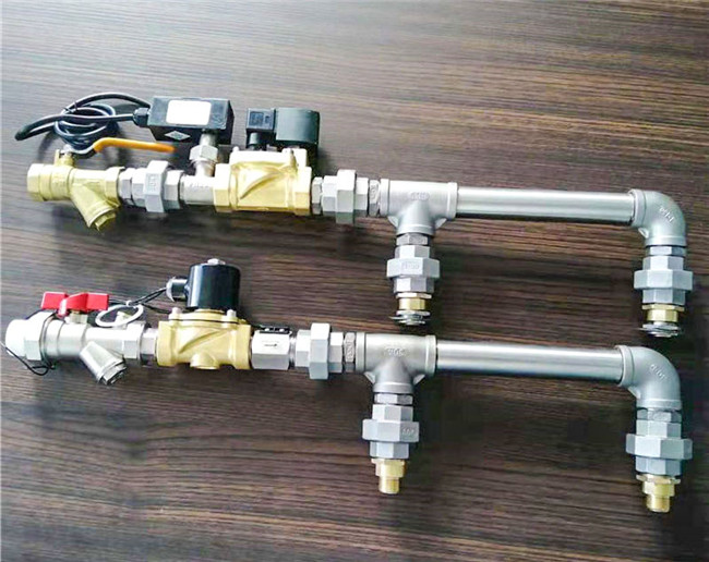 安裝在探頭之后相應(yīng)距離處(一般探頭和噴淋間距7-10m),探頭發(fā)現(xiàn)火花,通過快速啟動電磁閥,打開高壓大流量霧化噴頭,將霧化的高壓水注入管道,形成一段低溫?zé)o氧的環(huán)境,熄滅火花;同時